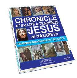 color illustrations.When ordered in quantities of three or more, $28 per book, plus $1 per book shipping and handling. Purchase must be prepaid. This is a considerable savings from the Amazon single copy price. Chronicle of the Life and Teachings of Jesus of Nazareth: The Greatest News Stories from 7 BC to AD 30: When ordered in quantities of three or more, $11 per book, plus $1 per book shipping and handling. Purchase must be prepaid. This is a considerable savings from the Amazon single copy price. To order, write to larry@ChronicleofJesus.com or call 904.794.9212 For quantity purchases, we will autograph self-adhesive bookplates and mail them to the purchaser at no additional cost. |